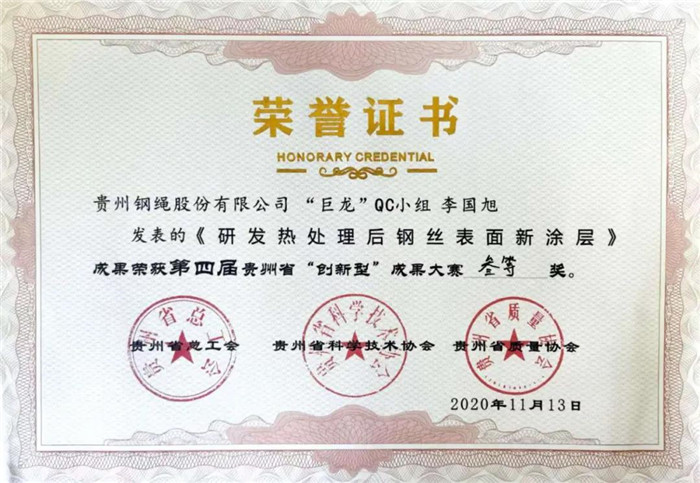 公司老區設備搬遷改造 公司召開疫情防控工作 公司為國外客戶生產長 公司舉行“11?9” 貴繩集團、貴繩股份分 周家榮榮獲“全國勞動 喜訊!公司多個集體和 貴州鋼繩載人索道繩取 公司4個QC成果在省 二分廠一鋼繩車間成繩 貴繩物流園開通運營 貴州鋼繩舉行生產指揮 2025年4月23日